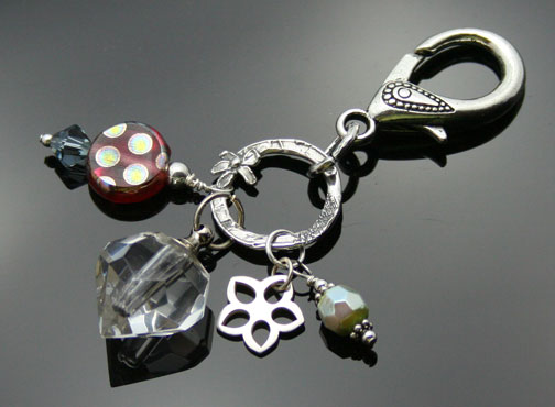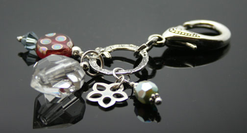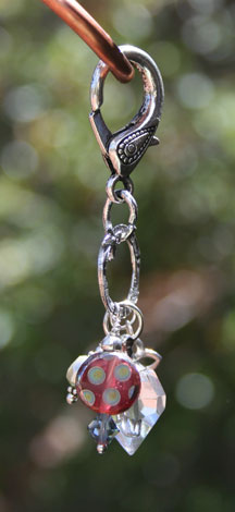 3" long, sterling silver, Swarovski crystal dangles, Czech peacock bead, hammered sterling silver ring and flower charms, large lobster claw. Small essential oil bottle has a screw cap. Comes with a mini-pipette in a gauze pouch. Price: $38.70 Now on Sale $35.70 - SOLD