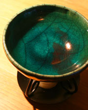 This gorgeous, hand-made Raku Aromatherapy Diffuser is as practical as it is beautiful! I love it because it has an extra-large water bowl. It holds a lot of water and you can be generous with your essential oils. It is about 4.5 inches high with the bowl measuring in at 5 inches wide and 1.75 inches deep. The Raku crackle glaze is a richly-colored dark turquoise with flashes of copper or a light turquoise. These bowls are hand-built using the coil method.
